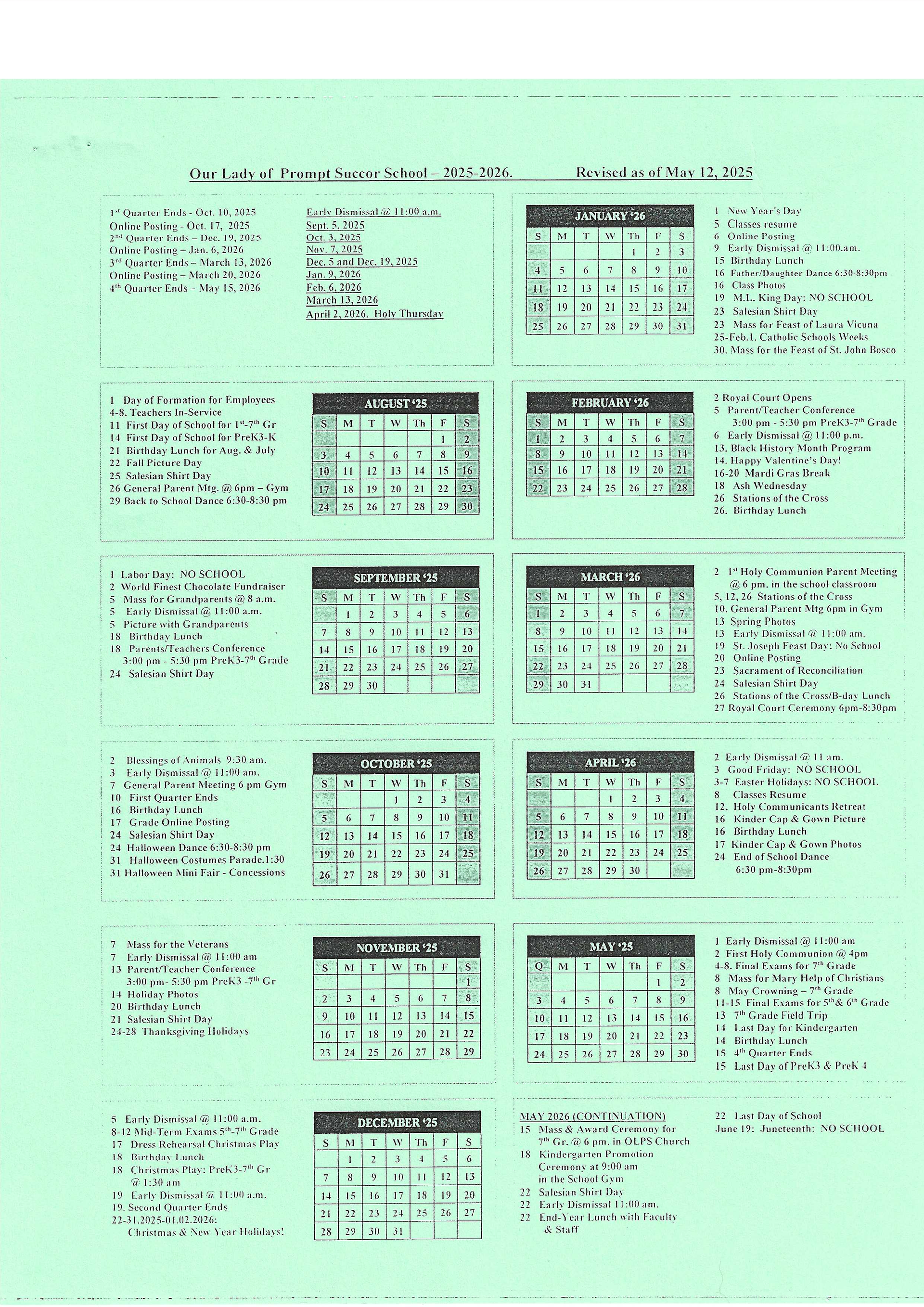 The mission of Our Lady of Prompt Succor School is to educate youth academically and spiritually in the Salesian tradition of Reason, Religion, and Loving Kindness.